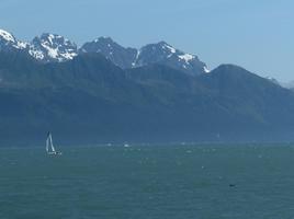 Along the way to and from the glaciers, the boat came close to some humpback whales. While it was neat to see these large animals, we didn't see a whole lot of them, usually just the back, a fin, or the tail. The waters were fairly deep right up to the shore and it looked like they were working on eating the fish in those areas.