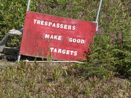 Chicken got it's name when the founding miners wanted to call it Ptarmigan (very common bird in the area and later the state bird), but couldn't agree on the spelling. Since these birds were also called "tundra chickens", they went with Chicken. Another story says that since ptarmigan tastes like chicken, it was named Chicken. From the other picture, you can see that the current nearby land owners are quite friendly. A lady pulled up in a large SUV about the time Jerry took to the picture to let him know that this road didn't go anywhere and turn around would be difficult down the way. She seemed fairly normal and didn't look like she was sizing him up as a target.