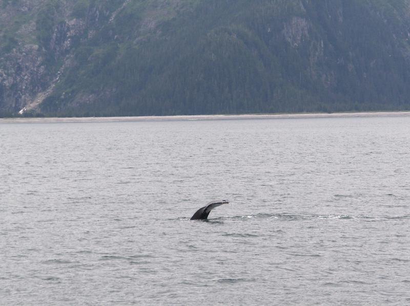 Along the way to and from the glaciers, the boat came close to some humpback whales. While it was neat to see these large animals, we didn't see a whole lot of them, usually just the back, a fin, or the tail. The waters were fairly deep right up to the shore and it looked like they were working on eating the fish in those areas.